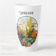 L'élégante tasse en latte présente un paysage désertique généré par l'IA à l'allure de vitrail avec cactus et montagnes. Personnaliser avec nom ou monogramme
