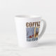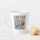 Un mignon cow-boy d'éléphant qui a eu un accident d'équitation, sur une tasse en latte en l'honneur du café. Utilisez "Personnalisez ce modèle" pour ajuster le texte "CAFÉ TOUT" et faire un cadeau unique et customisé; les changements de texte sont reflétés de part et d'autre. Doté d'un drôle d'éléphant qui balaie son casquette de dix gallons, dans des chaps en cuir et un mouchoir rouge. Dessin pour les amateurs de cowboy de l'ouest sauvage et les amateurs de café.