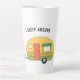 Funny latte tasse a "I sleep around" texte personnalisable avec la remorque de camp RV style rétro mignonne. Parfait pour ceux qui aiment le style de vie du camping RV dans les campings, les parcs de camping et les endroits éloignés du réseau - où le stationnement dans plusieurs endroits pendant des jours, des semaines ou des mois est juste un mode de vie.