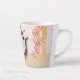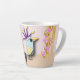 Cette tasse en latte inhabituelle présente mon design coloré et drôle de trois oiseaux imaginaires avec des plantes imaginaires dans l'arrière - plan. Parfait pour égayer la pause café ou donner en cadeau.
