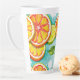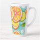 Cette grande tasse à latte présente un design vibrant aux agrumes mettant en vedette des tranches juteuses d'orange, de citron et de citron vert illustrées dans un style moderne et animé. Placée sur un fond sarcelle vif avec des accents d'éclaboussures dynamiques et des feuilles vertes fraîches, l'œuvre d'art crée une apparence énergisante et rafraîchissante qui illumine chaque rituel matinal. Avec sa forme élégante et haute et sa capacité généreuse, cette tasse est parfaite pour les lattés, cappuccinos, thés, chocolats chauds ou boissons du soir confortables. Durable, brillant et plein de personnalité, il apporte une explosion de couleur aux routines quotidiennes et fait un cadeau joyeux et mémorable pour les amateurs de fruits et les fans de design stimulant.