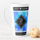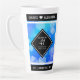 Célébrez le 41ème anniversaire de mariage topaz bleu avec cette tasse en latte élégante! Un élégant lettrage blanc avec des confettis hexagonaux sur un arrière - plan bleu cérulean bordé de barres noires ajoute une touche mémorable à cette occasion spéciale et à cette étape extraordinaire. Personnalisez avec les noms du couple et les années de mariage. Design © W.H. Sim, Tous droits réservés. Voir plus sur zazzle.com/expressionsoccasions