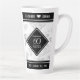 Célébrez le 60e anniversaire du mariage diamant avec cette tasse latte! Un élégant lettrage blanc avec des confettis en diamant stylisé sur un arrière - plan blanc bordé de barres noires ajoute une touche mémorable pour cette occasion spéciale et une étape extraordinaire. Personnalisez avec les noms du couple et les années de mariage. Design © W.H. Sim, Tous droits réservés. Voir plus sur zazzle.com/expressionsoccasions