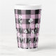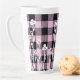 Tasse Latte Élégant doodé noir rose floral plaid motif