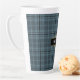 Express-toi dans le style avec cette tasse en latte personnalisable qui dispose d'un motif plaid classique gris-bleu vitre, un emblème noir et or, et un nom personnalisable. Ce design élégant et masculin fera un grand cadeau aux pères, aux fils, aux amis, aux collègues, aux amateurs de café ou de thé. Changez le nom pour qu'il corresponde à vos besoins.