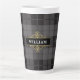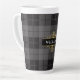 Sirotez votre boisson préférée avec style dans cette tasse à latte personnalisable qui présente un motif à carreaux tartan noir et gris classique, un emblème doré et un nom personnalisable. Ce design est élégant et masculin, et fera un excellent cadeau pour les hommes. Modifiez le nom pour répondre à vos besoins.