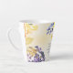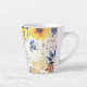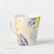 La tasse en latte d'écriture inspirationnelle représente un magnifique design floral unique avec des fleurs et des feuilles jaunes, orange, violets et bleus. Il présente la Bible Verse Ester 4:14, "Et qui sait si vous êtes peut-être venu dans le royaume pour un tel moment ?"-