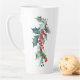 De magnifiques sprigs à feuillage persistant de Noël de houx d'aquarelle et de baies ornent les deux côtés de cette tasse de latte festive. Il fait un merveilleux cadeau pour les amis, la famille ou les collègues.