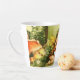 Fée blonde aux yeux bleus embrassant un grand champignon amanita pour customiser avec votre propre salutation, nom, message, etc