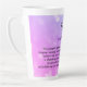Joli cadeau personnalisé Février Birthstone Amethyst design Latte Mug. Poem décrit les propriétés métaphysiques associées au cristal d'Améthyste.