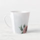 Magnifique mug de latte botanique avec des fleurs roses, bleues poussiéreuses et bleues marine avec des feuilles vertes.