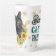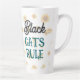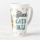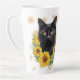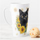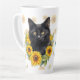 Grande tasse en latte avec design chat noir et tournesol. Un exemple de libellé est, "règle des chats noirs" et chaque ligne de texte peut être modifiée - ou supprimer tous. Un visage de chat noir est entouré de tournesols jaunes. L'arrière - plan tient plus de tournesols.
