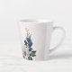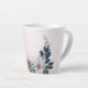 Magnifique mug à latte botanique avec des fleurs roses romantiques, blanches et bleues marine avec des feuilles vertes.