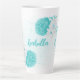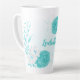 mug de latte botanique à fleurs turquoise et blanches romantiques
