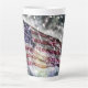 Feu d'artifice éclatant, dans des fusées explosives, soulignant ce symbole, d'une vague, drapeau américain, affichant, sprays colorés de ; rouge, blanc, bleu, gris, argent, jaune, vert, et violet-contre un crépuscule, ciel.