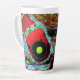 Sip your favorite drinks in bold style with this Latte Mug featuring Frequency Serpent. A serpentine red structure curves vertically across the mug, marked by circular elements resembling vibrational cores, while horizontal bands of blue, green, and white flow in the background like waves of data. The interplay of intense colors and curved forms creates dynamic tension, transforming this everyday mug into a functional canvas of digital abstract art. Perfect for coffee, tea, or gifting to those who love utility with creativity.