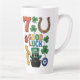 Funny Black Cat Lucky Charm St. Patrick's day Latte Mug is a unique design! Featuring a collection of classic luck charms like the lucky 7, ladybugs, and clovers, contrasted with a cheeky black cat telling you to "keep trying." Perfect for anyone who loves a mix of superstition and sarcasm .hand drawn with digital illustration.