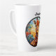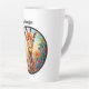 L'élégante tasse en latte comprend une girafe ronde générée par l'IA et un portrait floral en vitrail. Personnaliser avec nom ou monogramme