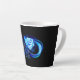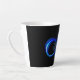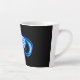 Luminous infinity symbol with glowing, beautiful, lushly blooming rose made of blue flames on black background.