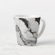 Cette tasse en latte présente un élégant marbre noir et blanc aux accents dorés.