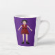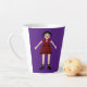 Cette énorme tasse en latte présente une image art numérique d'un Vampiress Halloween déplaisant mais beau. Le vampire féminin a de longs cheveux noirs épicés et porte une robe rouge ornée d'une araignée et décorée de crânes noirs, étoiles, diamants et paire de cygnes noirs. Elle a des lèvres rouge vif recouvertes de rouge à lèvres et un sourire sulfureux et de longs crocs blancs. Elle a aussi des ongles noirs, un bracelet rouge sang de rubis et des bottes noires au talon haut avec des arcs en or. Ses bras sont ouverts vous accueillant pour une mauvaise étreinte.