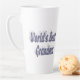 Tasse en latte avec la meilleure grand-mère du monde en texte bleu-gris 3D. Mug disponible en plusieurs styles et couleurs.
