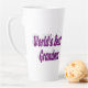 Tasse en latte avec la meilleure grand-mère du monde en texte violet 3D. Mug disponible en plusieurs styles et couleurs.