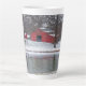 Tasse Latte Grange Rouge Dans La Neige