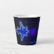 Une image fractale 3D simple et bleu, ressemblant à un vaisseau spatial stylisé, superposée à un arrière - plan étoilé. Des anneaux concentrés (ondes de gravité ?) sortent de l'engin spatial pour pénétrer dans le vide apparemment vide de l'espace. Une aura bleu clair entoure l'engin spatial, peut-être le résultat d'un déplacement plus rapide que la lumière. Ajoutez votre propre texte.