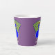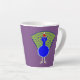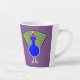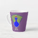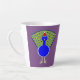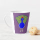 Cette énorme tasse en latte présente un paon de Noël brillant et audacieux portant un chapeau de Père Noël. L'oiseau a un ventre bleu vif avec une belle collection de plumes tendues fièrement derrière. Les oeillères sont bleues, brunes et vertes. Le Peacock a de grands yeux noirs et un mignon petit bec gris.
