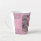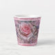 C'est un "One of a Genre" Rose Latte Mug unique ! Il présente une grande belle rose rose entourée de fleurs d'haleine de bébé nichée dans une frontière violet, rose et vert Arrière - plan et dentelle! Art Graphique Original Par L'Artiste Kerry Miller