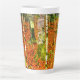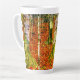Latte Mug représentant la peinture de Gustav Klimt Ferme avec bouleaux (1903). Un paysage automnal de feuilles oranges dans une forêt de bouleaux aux belles fleurs bleues. Un cadeau merveilleux pour les amateurs d'Art Nouveau et d'Art autrichien.