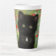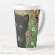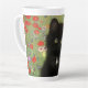 Latte Mug avec un chaton Gustav Klimt ! Ce chaton noir porte un collier d'argent et s'assoit dans un champ de fleurs rouges, bleues, blanches et jaunes. Un cadeau merveilleux pour les amateurs d'art amoureux des chats et autrichiens !