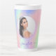 Un arrière - plan holographique, rose, violet, menthe, décoré de mousseux multicolores autour de la photo. Personnalisez et ajoutez une photo et un nom. Le nom est écrit avec un script de style écrit à la main avec des swashes. Pour que les swashes ne suppriment que le nom de l'échantillon, laissez les espaces ou émoticônes devant et après le nom.