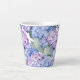 Cette tasse en latte en céramique est présentée avec une belle impression florale hydrangée multicolore. Customisez cet objet ou achetez tel quel. Image sous licence