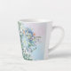 Cette jolie tasse en latte présente une belle aquarelle design florale avec des hydrangées et d'autres fleurs dans les tons bleu pastel. Deux tailles.