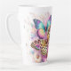 Cette chatte tlatte enchanteresse présente un design dynamique et fantaisiste de papillons et de fleurs. Les papillons sont agrémentés d'un mélange de motifs colorés, dont des taches de léopard et des teintes de dégradé, créant un effet animé et attrayant. L'arrière - plan est remplie de fleurs douces et pastel qui complètent les ailes vives des papillons, faisant de cette tasse un ajout charmant et charmant à toute collection d'amoureux du café. Parfait pour ajouter une touche de beauté d'inspiration naturelle à votre routine matinale.