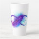 Infinity symbole with a beautiful feather painted in purple and blue bright colors on white background