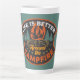 Style rétro badge camping caractéristiques graphiques feu de camp avec texte "La vie est meilleure autour du feu de camp" sur sombre aqua arrière - plan