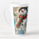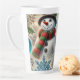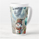 Jack Frost et Snowman Christmas Latte Mug : La tasse présente un thème hivernal enchanteur. L'un des côtés présente Jack Frost, représenté comme un personnage fantaisiste avec des robes bleues glacées et des cheveux baisés par le gel, soufflant doucement un flocons de flocons de neige. De l'autre côté, un joyeux bonhomme de neige au nez de carotte, un foulard rouge douillet et un chapeau est entouré de pins enneigés. L'arrière - plan est un paysage enneigé serein, doucement éclairé par un ciel bleu pâle aux étoiles scintillantes. La poignée est ornée de subtils motifs de flocon de neige, et la jante a un dégradé délicat du blanc glacé à l'argent glacé. Parfait pour siroter des lattes de vacances, ce mug combine un design cosy mais magique !