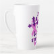 verset de l'Écriture, "Je peux faire tout par le Christ qui me fortifie". Croix violette dorée avec un ruban rose à gauche et un papillon violet avec un ruban rose à droite. En outre, un petit arc-en-ciel et un ruban rose seul et deux coeurs au fond.