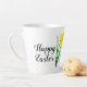 Cette tasse de latte pour les vacances de Pâques présente un lapin et un panier adorable avec des œufs colorés. Il y a aussi une fleur de jonquilles jaune et le message "Joyeuses Pâques" Une tasse adorable pour les petits-enfants.