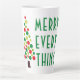 La carte de vacances de style moderne et minimaliste comprend un sapin de Noël orné de boules rouges et vertes, un texte vert "Merry Every Thing" et un arrière - plan blanc.