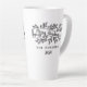 Joyeux Noël Rustique Ruban Nom de famille Latte Mug. Design noir et blanc avec script Joyeux Noël sur un ruban rustique avec feuillage. Grand comme un cadeau de Noël familial. Ajoutez votre nom de famille et votre année.