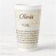Joli anniversaire de Juin pierre de naissance Pearl Poem design Latte Mug Cadeau. Poem décrit les propriétés métaphysiques de la Perle.