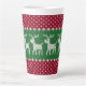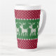 C'est un look de pull tressé - en imprimé! Un motif richement décoré de rennes blancs qui parcourt un champ de verdure entouré d'un rouge de Noël aux motifs blancs.