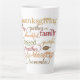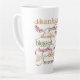 Cette grande tasse en latte est montrée avec une impression festive de messages Thanksgiving. Customisez cet objet ou achetez tel quel. Image stock