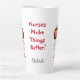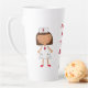Sur cette tasse latte, une jolie infirmière de dessin animé est de chaque côté, avec le texte en rouge au milieu, Nurses Make Things Better. Votre nom ou tout autre texte personnalisé est en gris au milieu. Parfait pour l'infirmière dans votre vie !