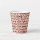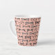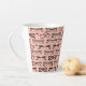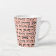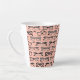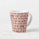 Cette tasse en latte présente une variété de différentes lunettes et des cadres de lunettes en noir et blanc sur un rose pâle.