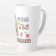 My Class Is Full of Sweethearts - A Jar of Joy and Kindness Latte Mug Un charmant bocal débordant de coeurs colorés se trouve sous la phrase "My class is full of sweethearts", où le lettrage ludique et multicolore rayonne de chaleur et d'affection. Un ruban rose ajoute une touche douce et capricieuse, tandis que des coeurs épars amplifient le sentiment d'amour. Cette conception joyeuse célèbre la joie, la connexion et le soin qui remplissent une salle de classe dirigée par le coeur.